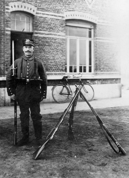 Soldat mit Gewehr88 und Seitengewehr M/71