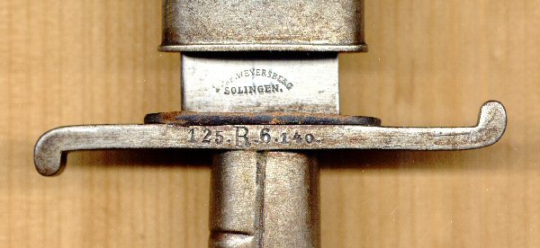 Auf der Fehlschärfe der Klinge befindet sich der Herstellerstempel ("Gebr.Weyersberg Solingen").