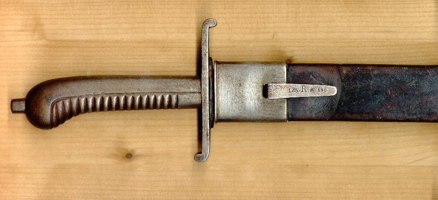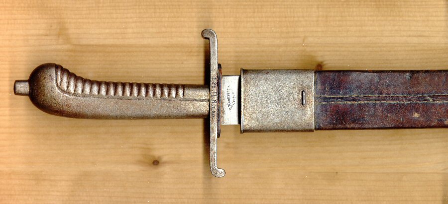 Schweres Infanterie-Faschienenmesser (Alle Teile,Griff,Klinge,Parierstange sowie Ort-und Mundblech aus Eisen gefertigt).
