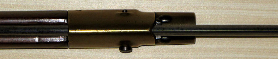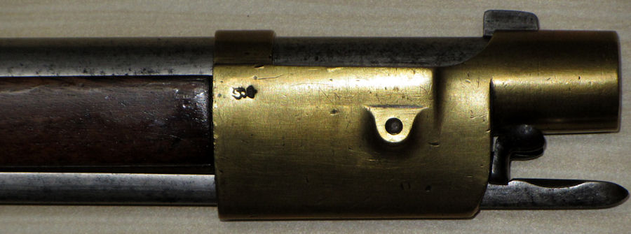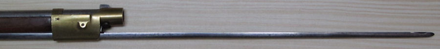 | Frontpartie einer Zündnadel-Pikenbüchse M54 mit voll ausgezogenem Pikenbajonett.(Ansicht von unten) |