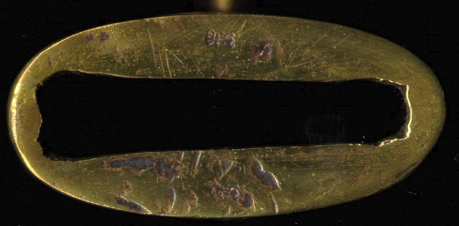 Detailaufnahme der Parierstangenunterseite mit Abnahmestempel "Krone mit gotischem Buchstaben" |