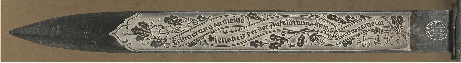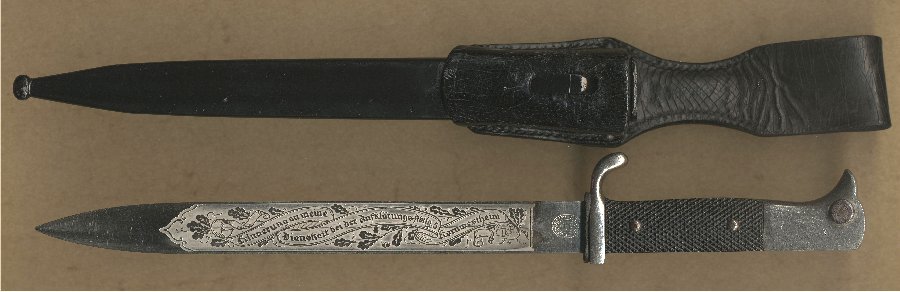 Eigentumsseitengewehr mit geätzter Klinge Griffstück aus nichtmagnetischem Metall