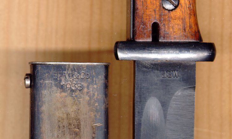 Herstellerstempel: Bajonett: ?2asw , Scheide: Berg & Co. 1938 Abnahmestempel: Griffstück 2 x WaA 519